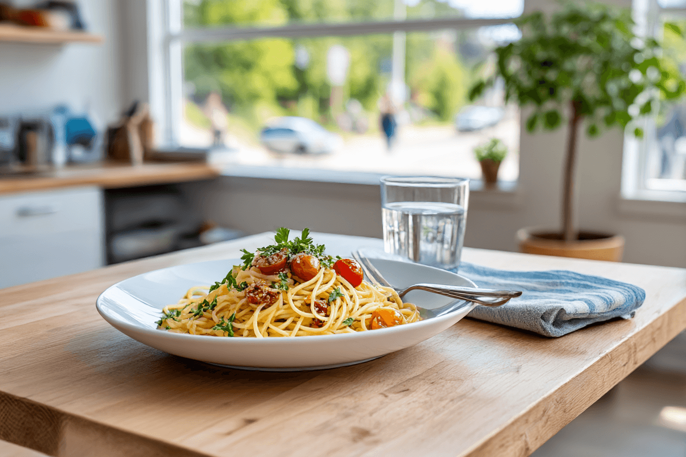 いつながらのパスタもハーブの香りを纏うと美味しさも変わります。